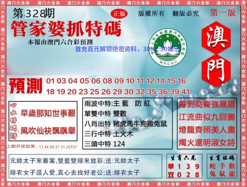 333期:蓝月亮网 【平特一尾】 已公开