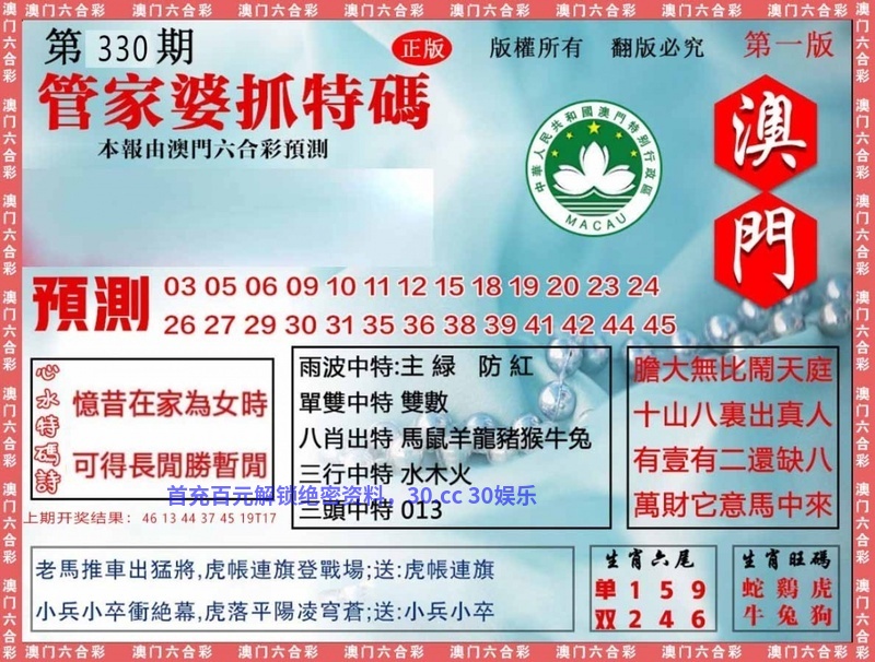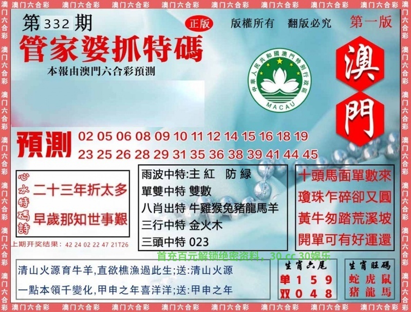 | 333期:九肖18码※开:發00准 | ||