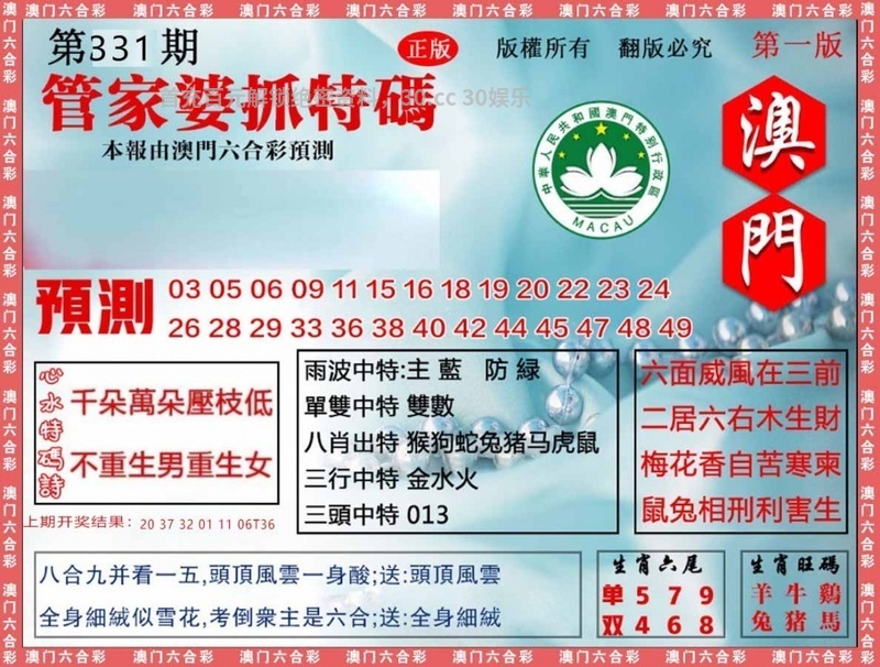 | 330期:九肖18码※开:马36准 | ||